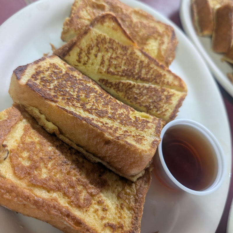 Thick-cut slices of golden brioche, dipped in our signature cinnamon-vanilla batter and grilled to perfection. Lightly crisp on the outside, soft and fluffy inside — served with warm maple syrup, powdered sugar, and your choice of butter or fresh seasonal fruit.